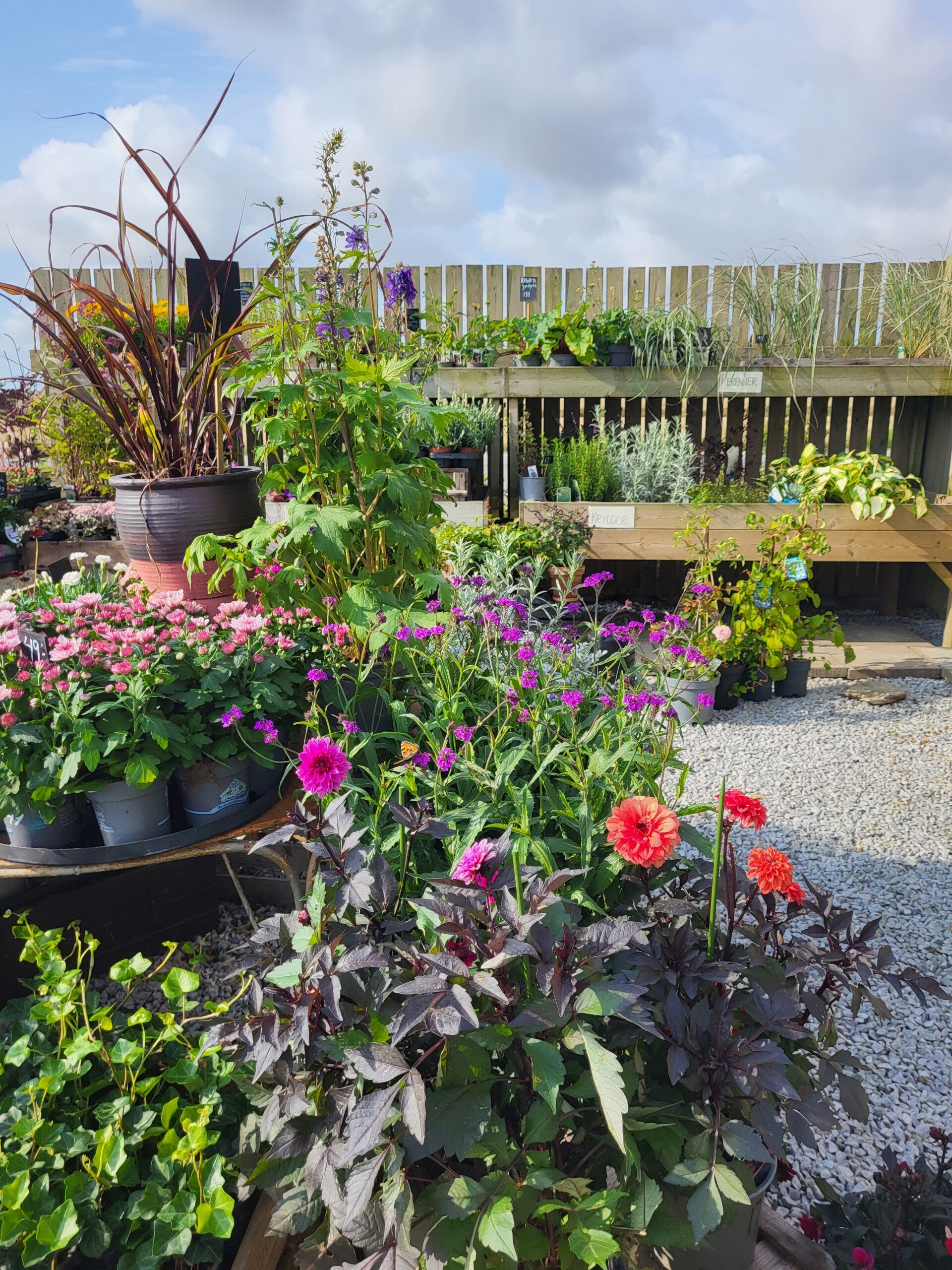 På lilla blomstertorget hittar du blommor i alla möjliga färger och former. Trädgårds dekorationer, krukor mm.